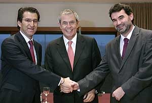 Por cierto, eso de que el BNG é el único que pon a Galicia encima da mesa, non debe de ser mui cierto porque si Touriño está disposto a aprobar el mismo Estatuto que Quintana, entónces; cuál é a diferencia? As siglas? El número de Diputados? Vamos.